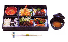 ステーキをポン酢で韓国風からあげ、カニクリームコロッケなど楽しみ色々の箱膳です。
